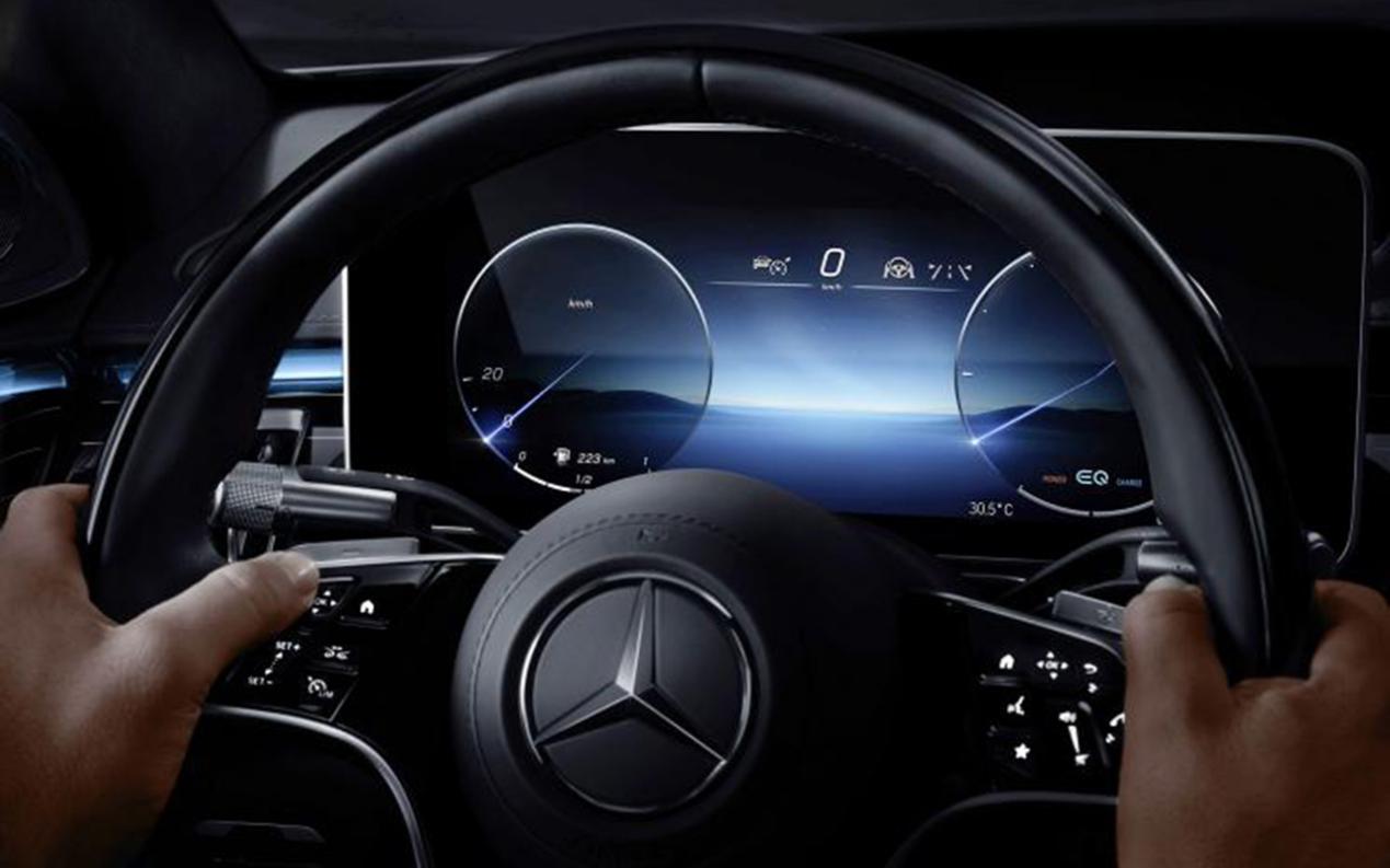 内饰上,全新S级的整体设计思路来自豪华游艇上的制造理念,中控台使用了分层式设计,已容纳巨大的AR-HUD抬头显示系统、全液晶仪表盘,以及12.8英寸的OLED中控多媒体触摸屏。空调出风口设计也是颇具个性,很有旗舰级轿车的气场。